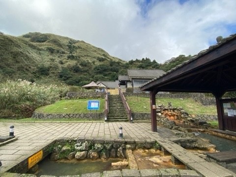 回程前若是還有時間,阿美建議可以去「冷水坑公共溫泉浴室」泡泡腳,從遊客服務中心走過去一下就到,除了男、女各1間的公共溫泉浴室之外,還有一座戶外泡腳池,這裡的溫泉由七星山東麓的岩隙中自然湧出,其為地下水經間接傳導加熱而成,溫度約40℃,因為相較於陽明山其他地區泉溫度低而得名,屬低溫弱酸性碳酸氫鹽溫泉,打道回府前來這裡體驗泡腳樂趣,也可為此次的行程劃下一個玩美的休止符。
